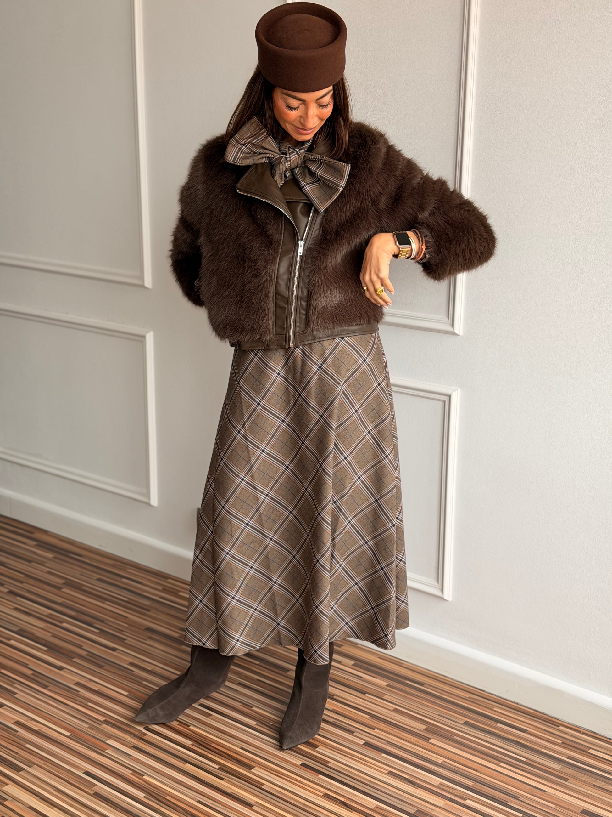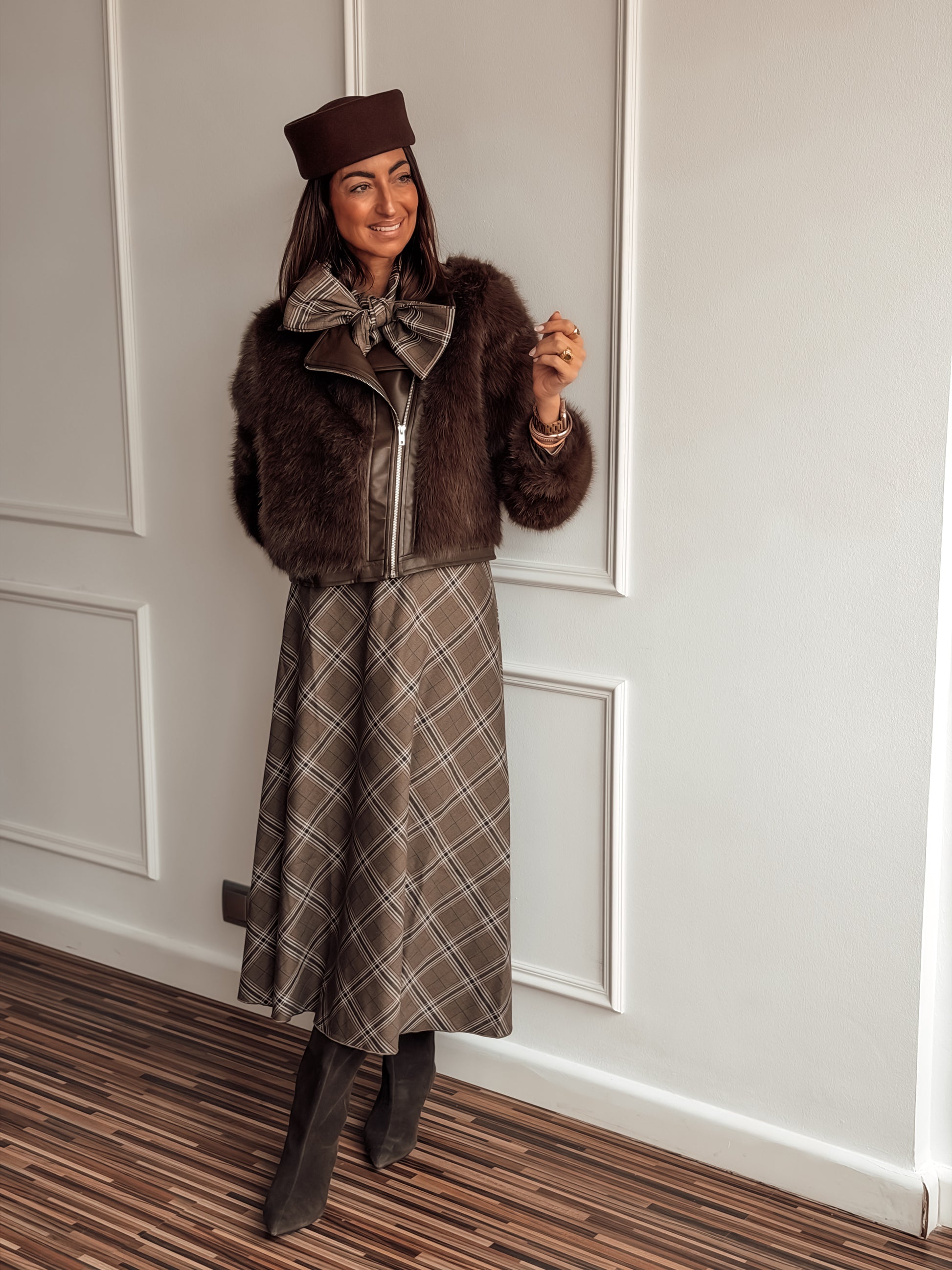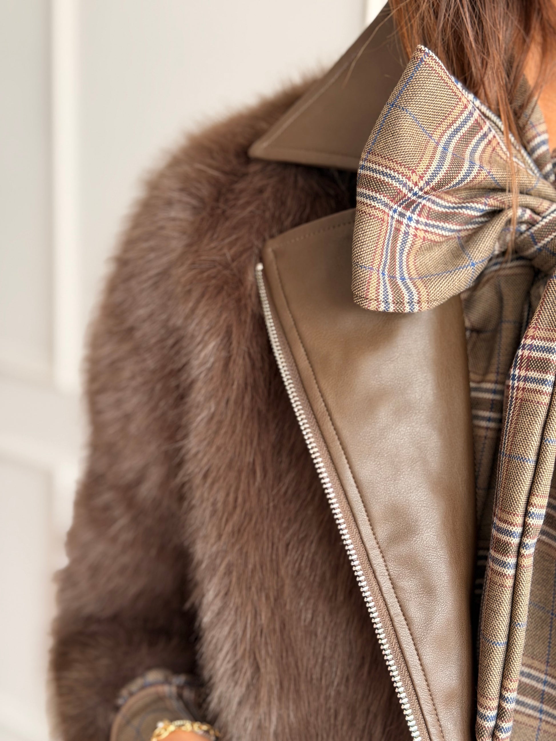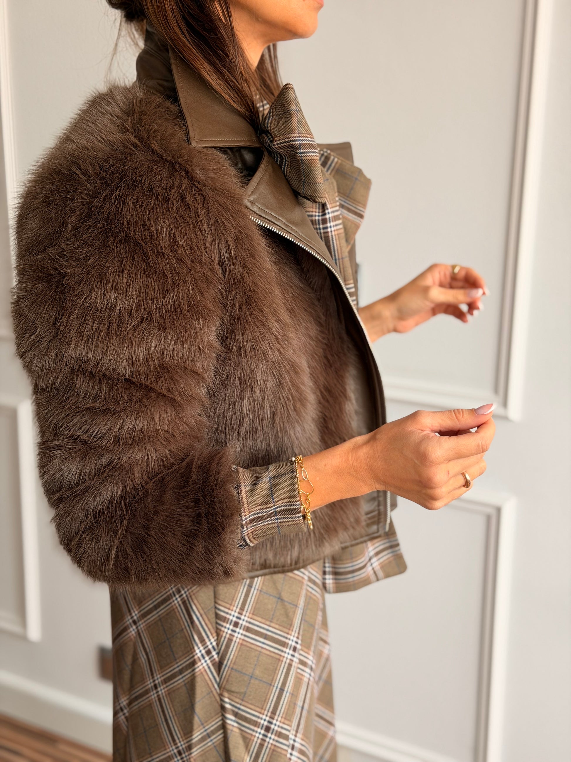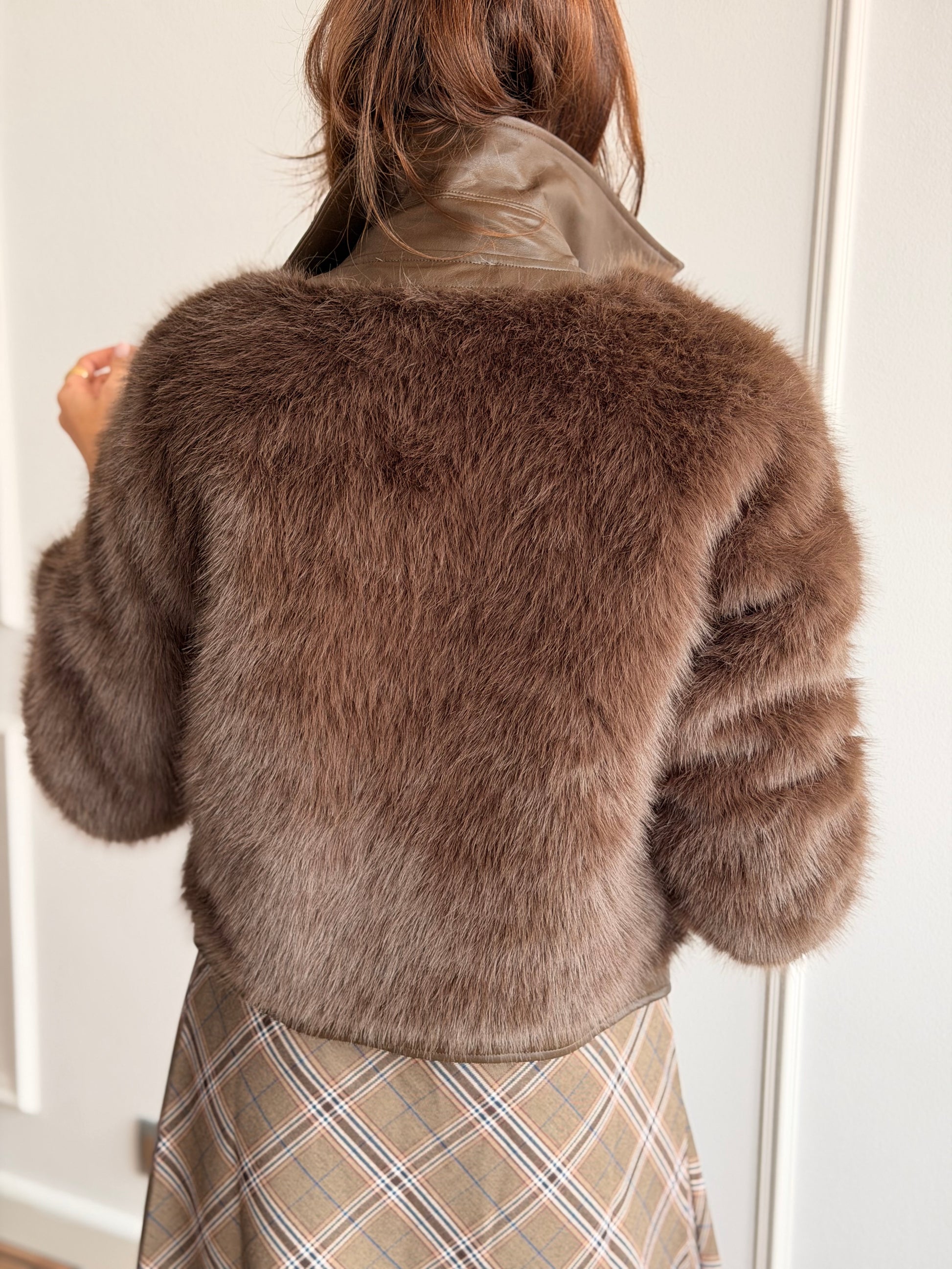 Cazadora biker de polipiel y pelo calidad premium en marrón chocolate.Super calentita y tremendamente gustosa .