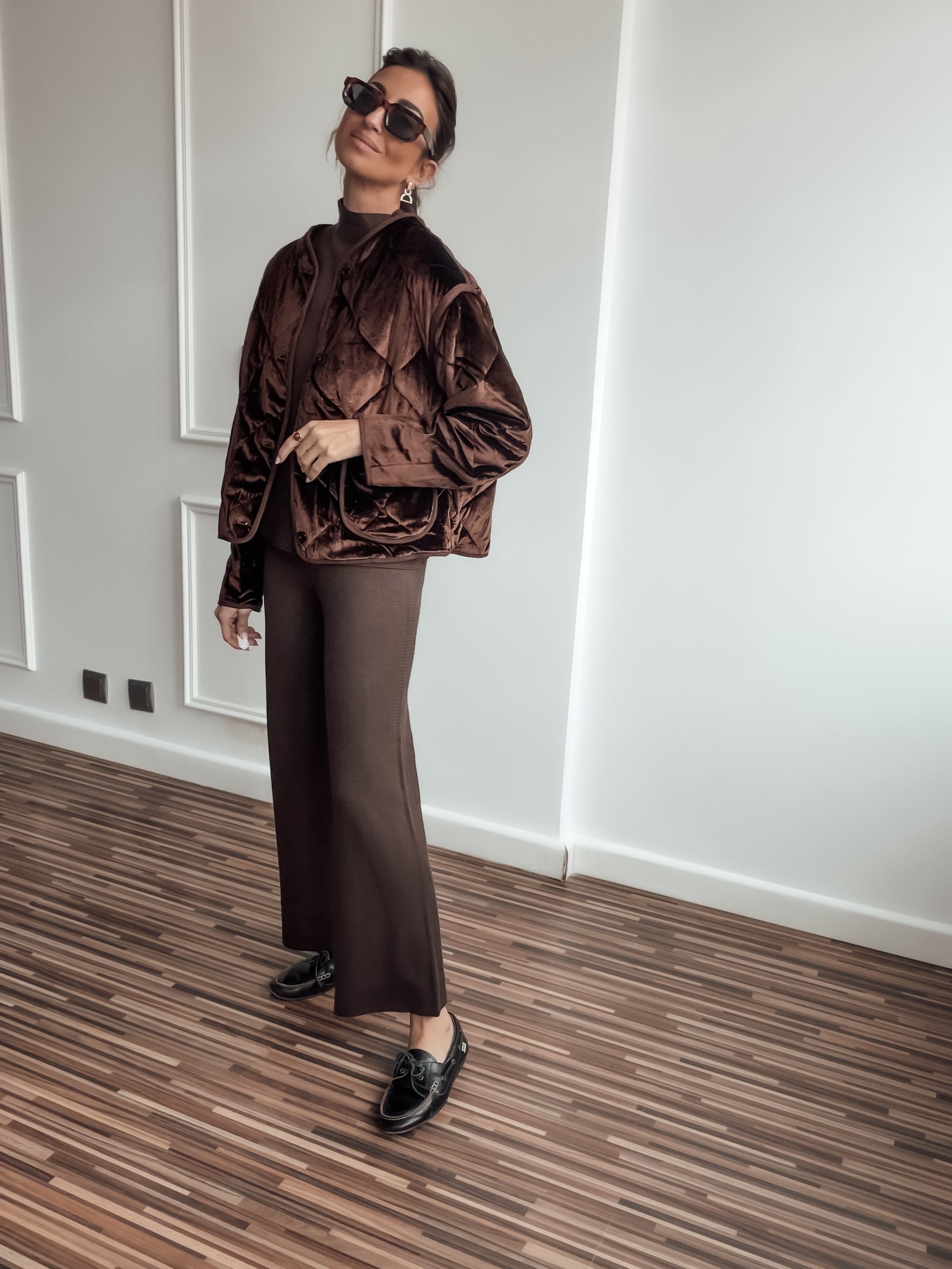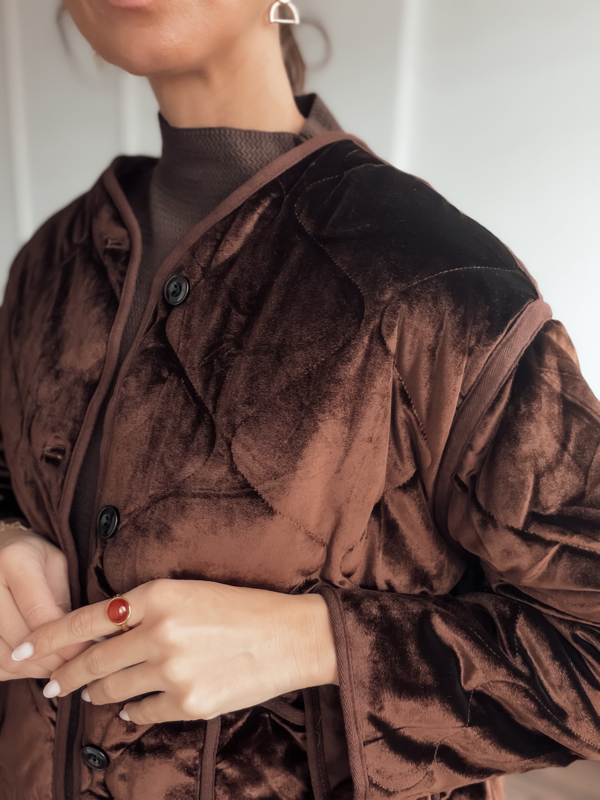Chaqueta acolchada oversize en terciopelo de bastante gramaje .