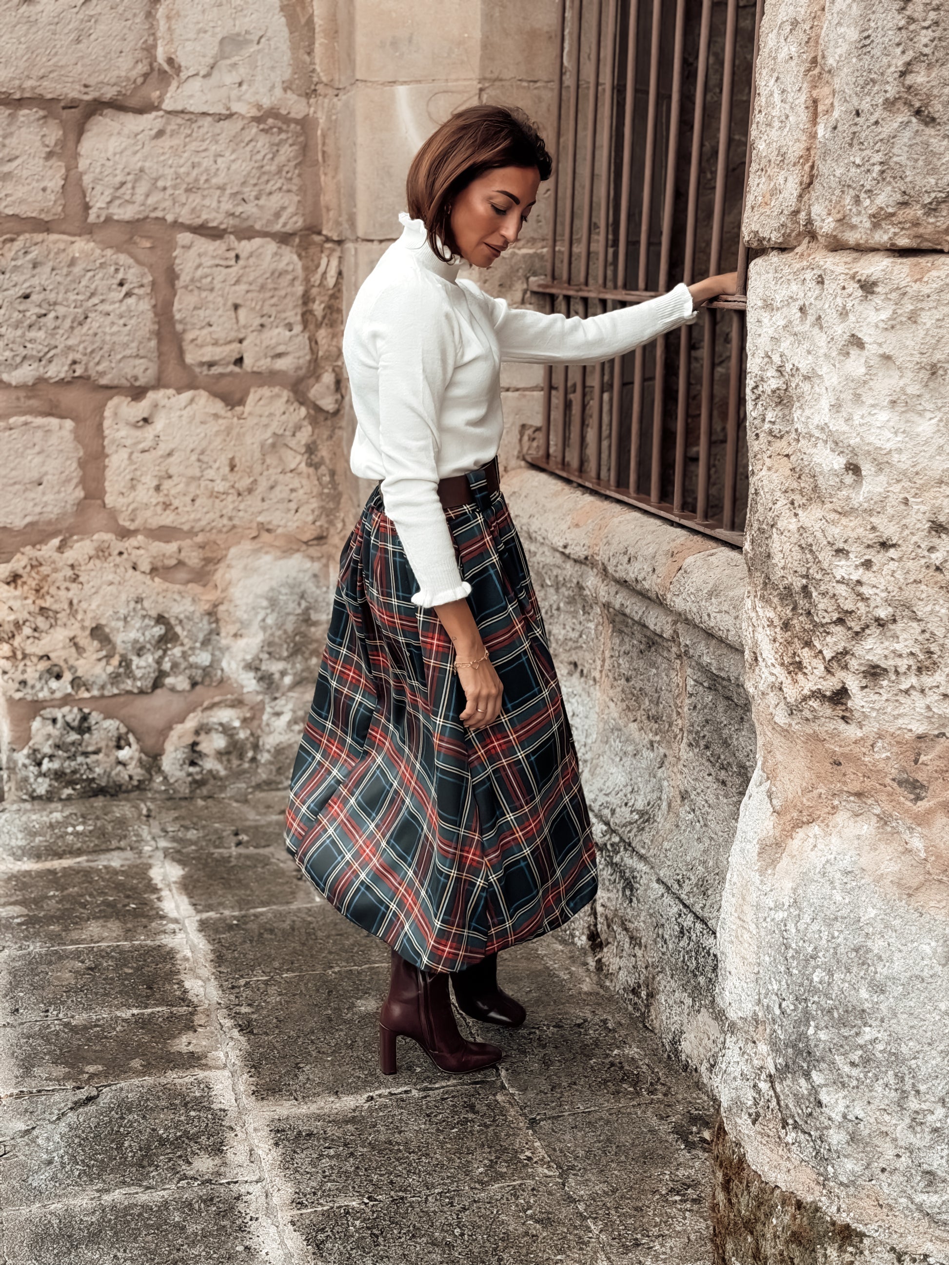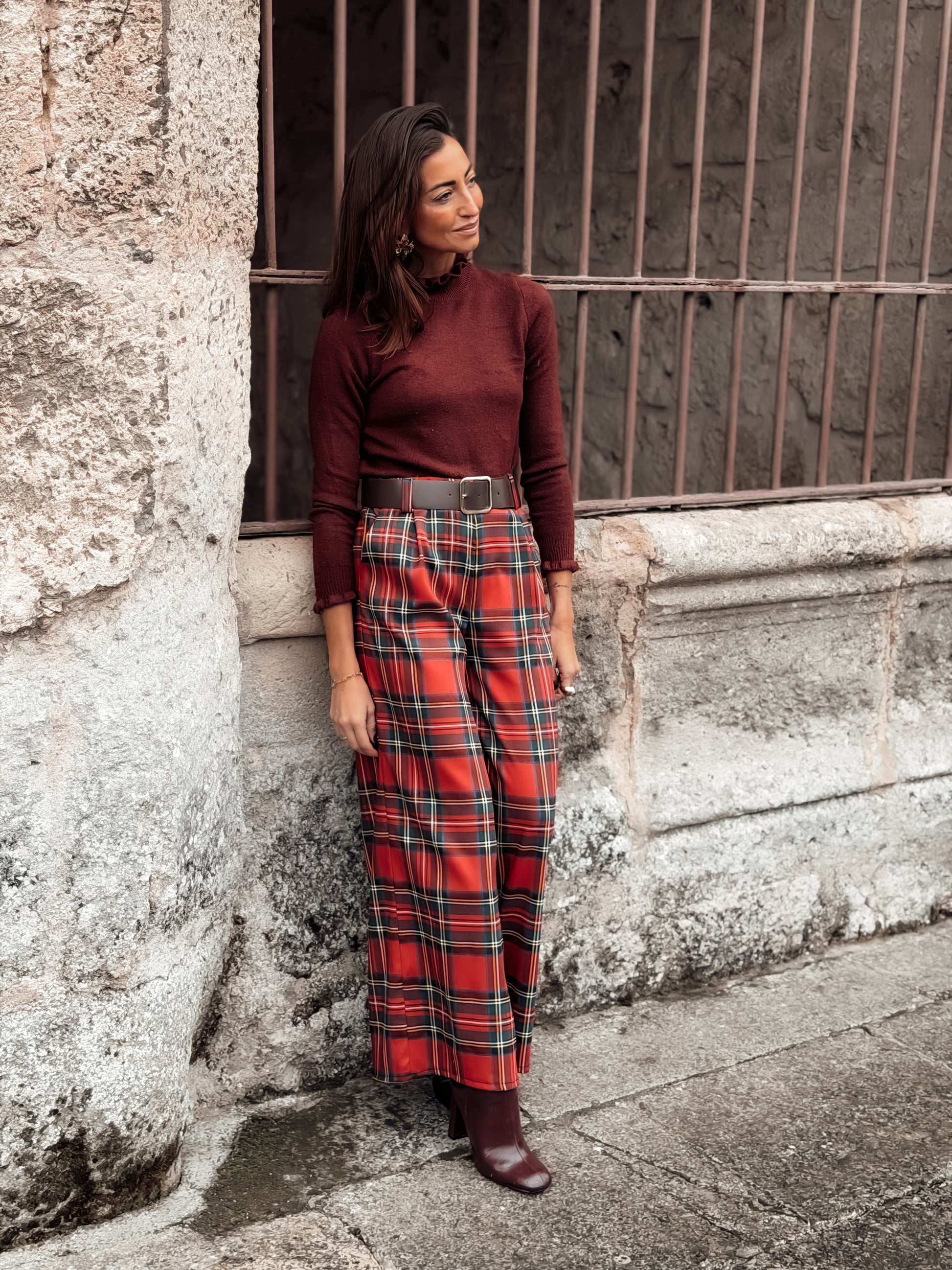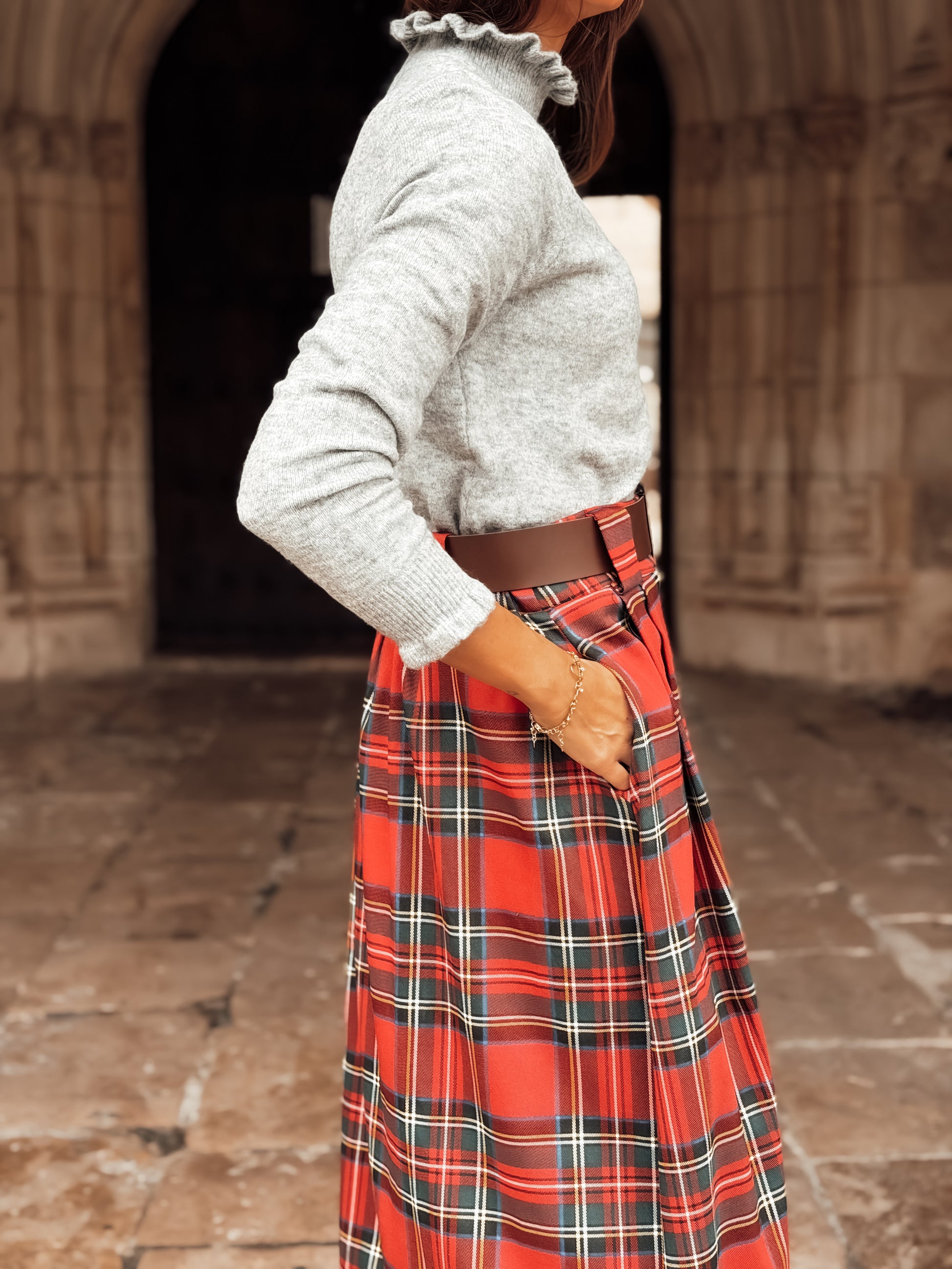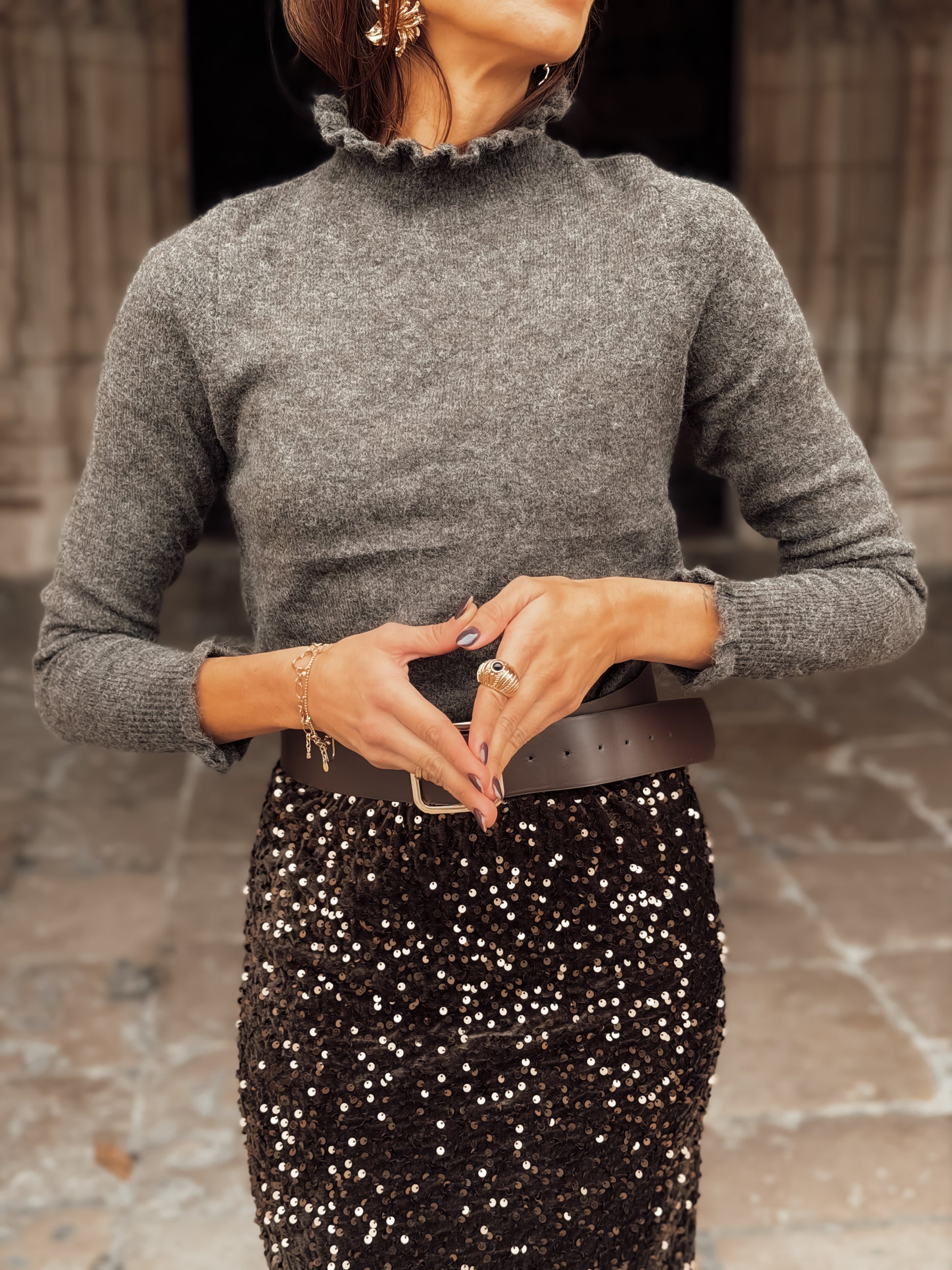 Jersey punto cuello alto con detalle de ondas en cuello y mangas .Dos tonos gris, crudo, burgundy, marrón .