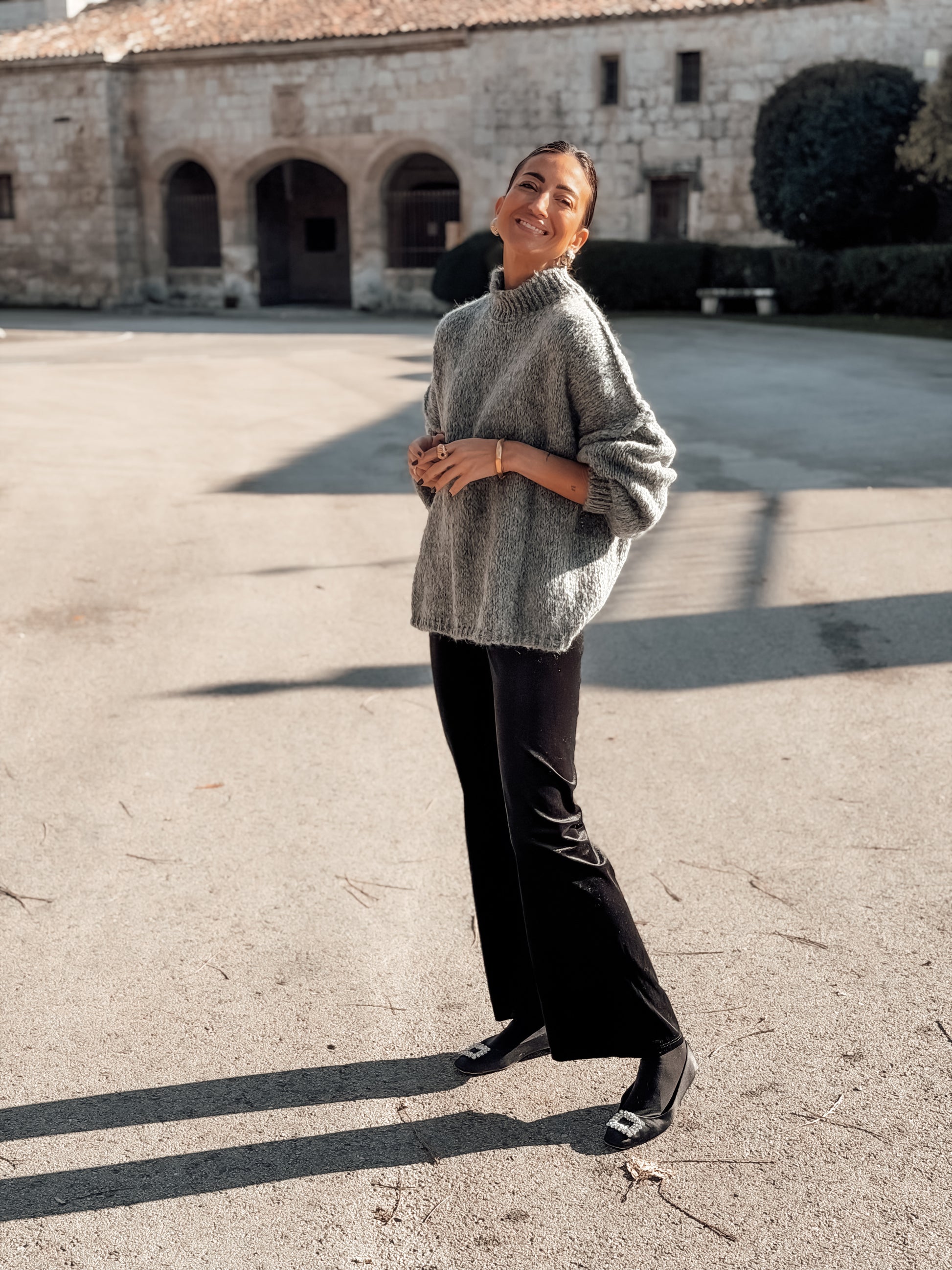 Jersey lana oversize tacto cashmere .Dos tonos gris /marron .