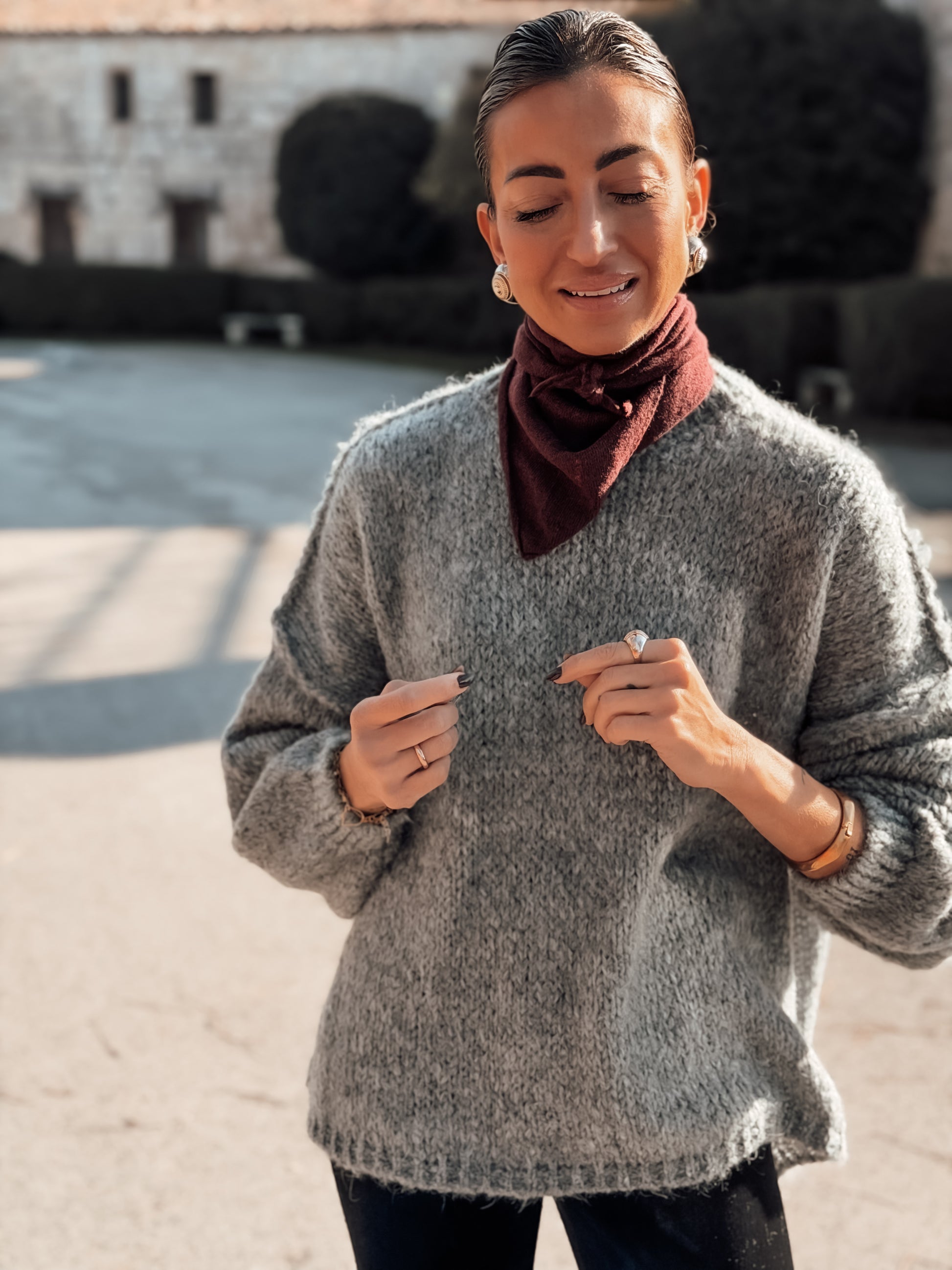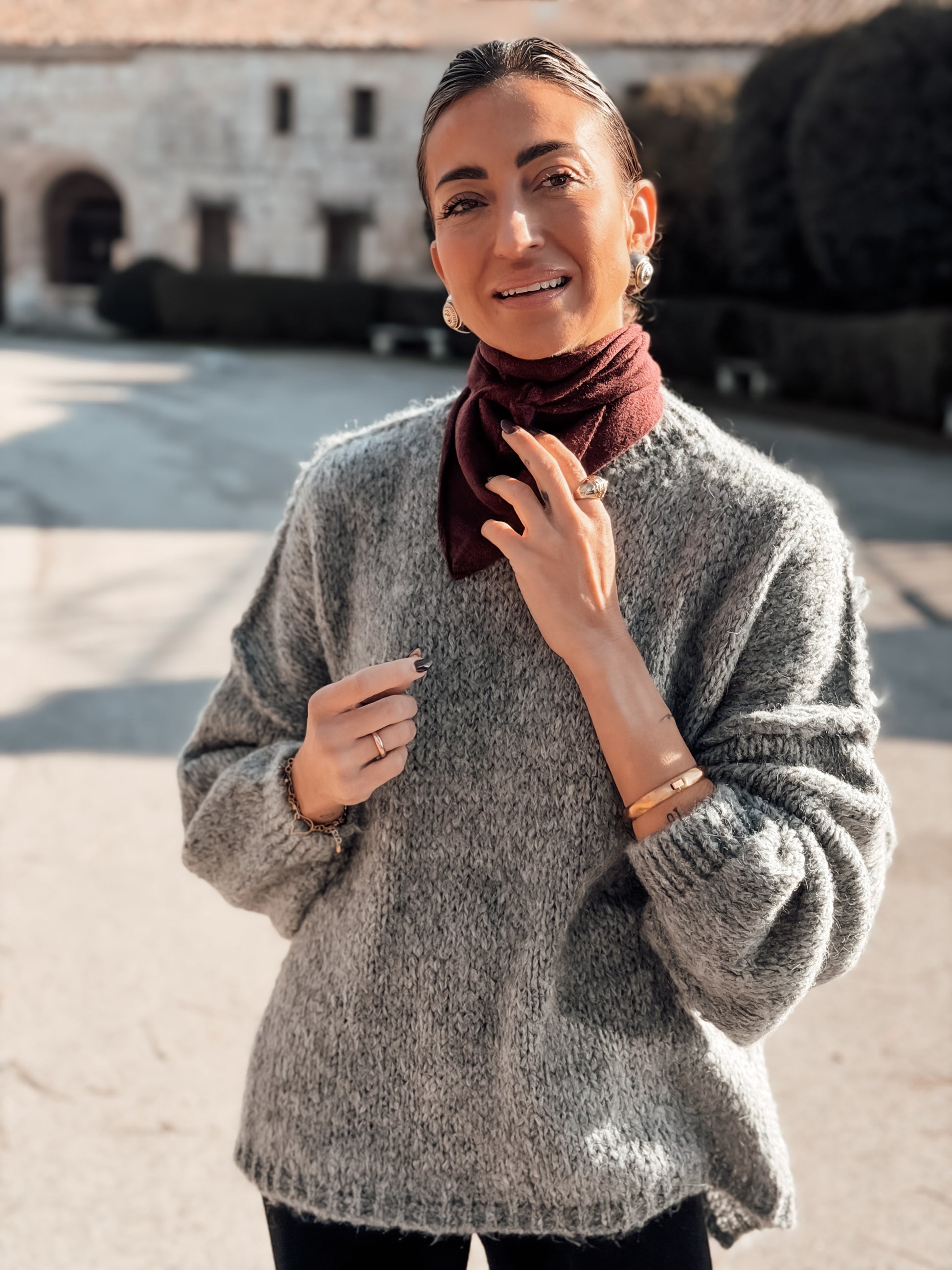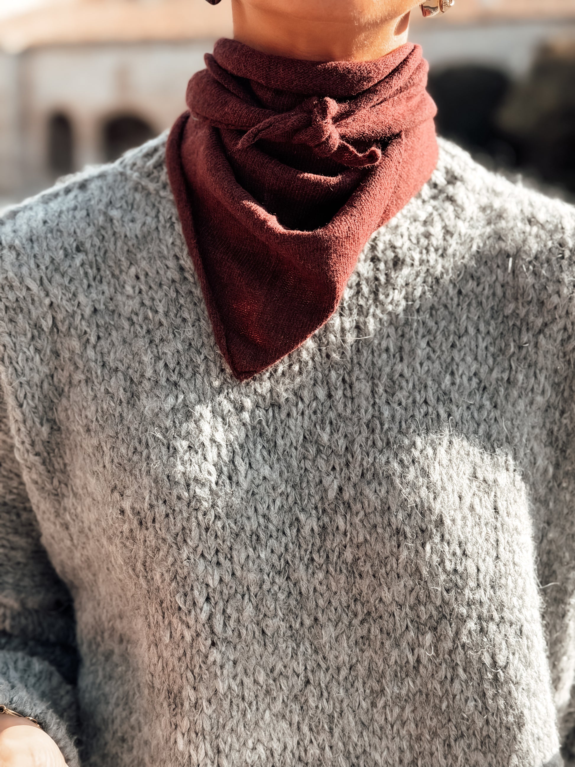 Pañuelo para el cuello de cashmere y lana .Perfecto para acompañar tus looks.Tres tonos : burgundy, topo, marrón .