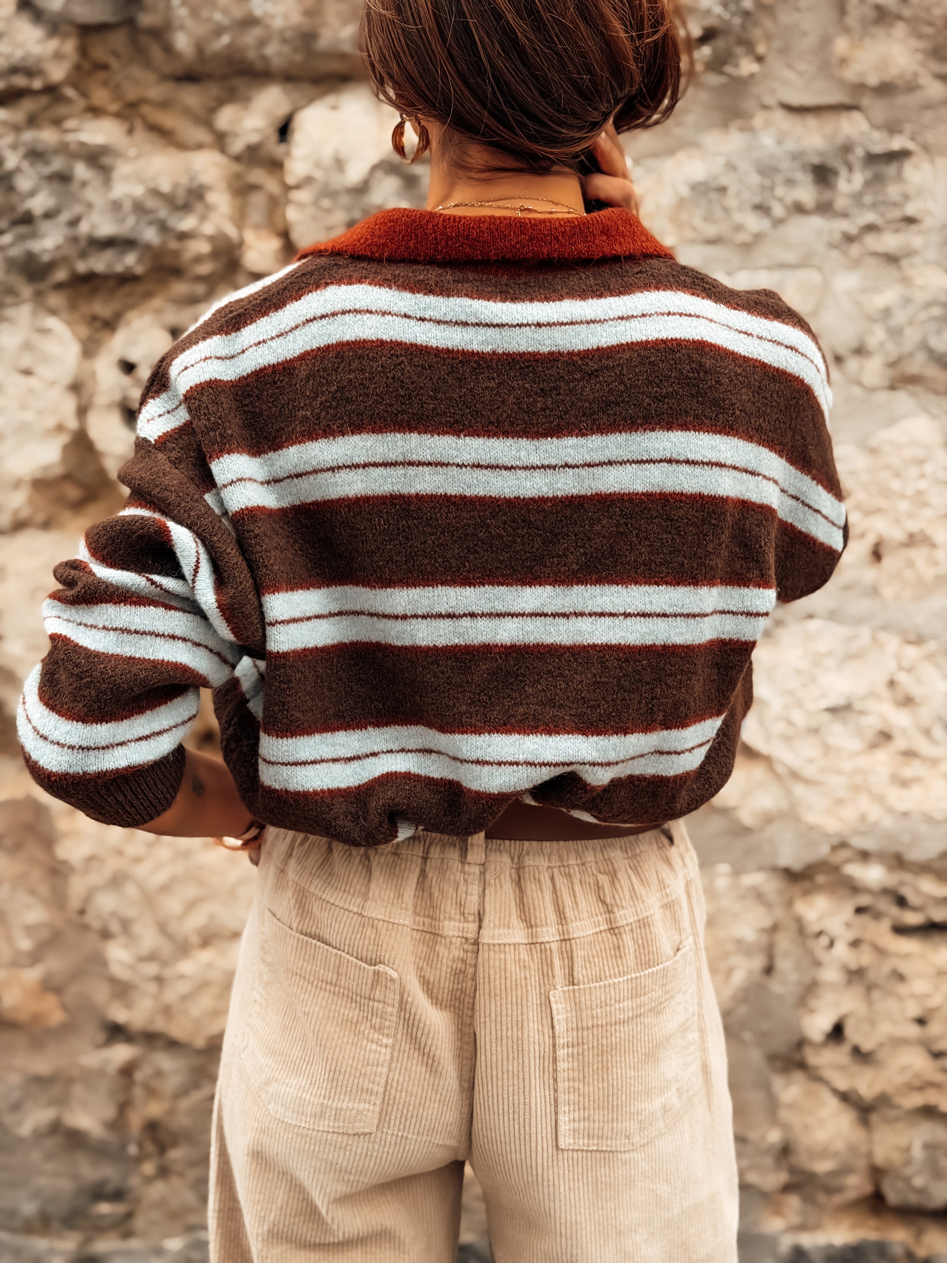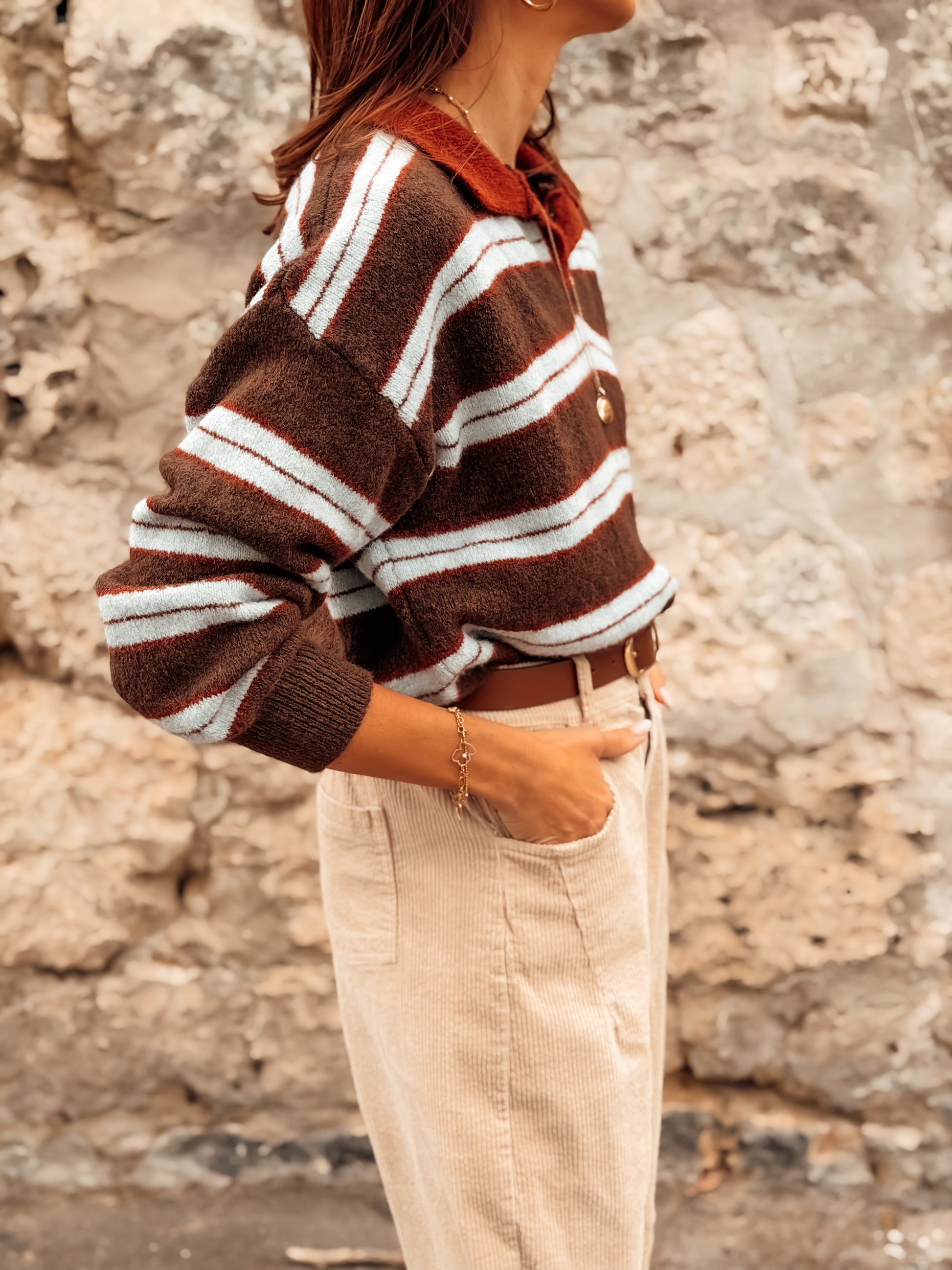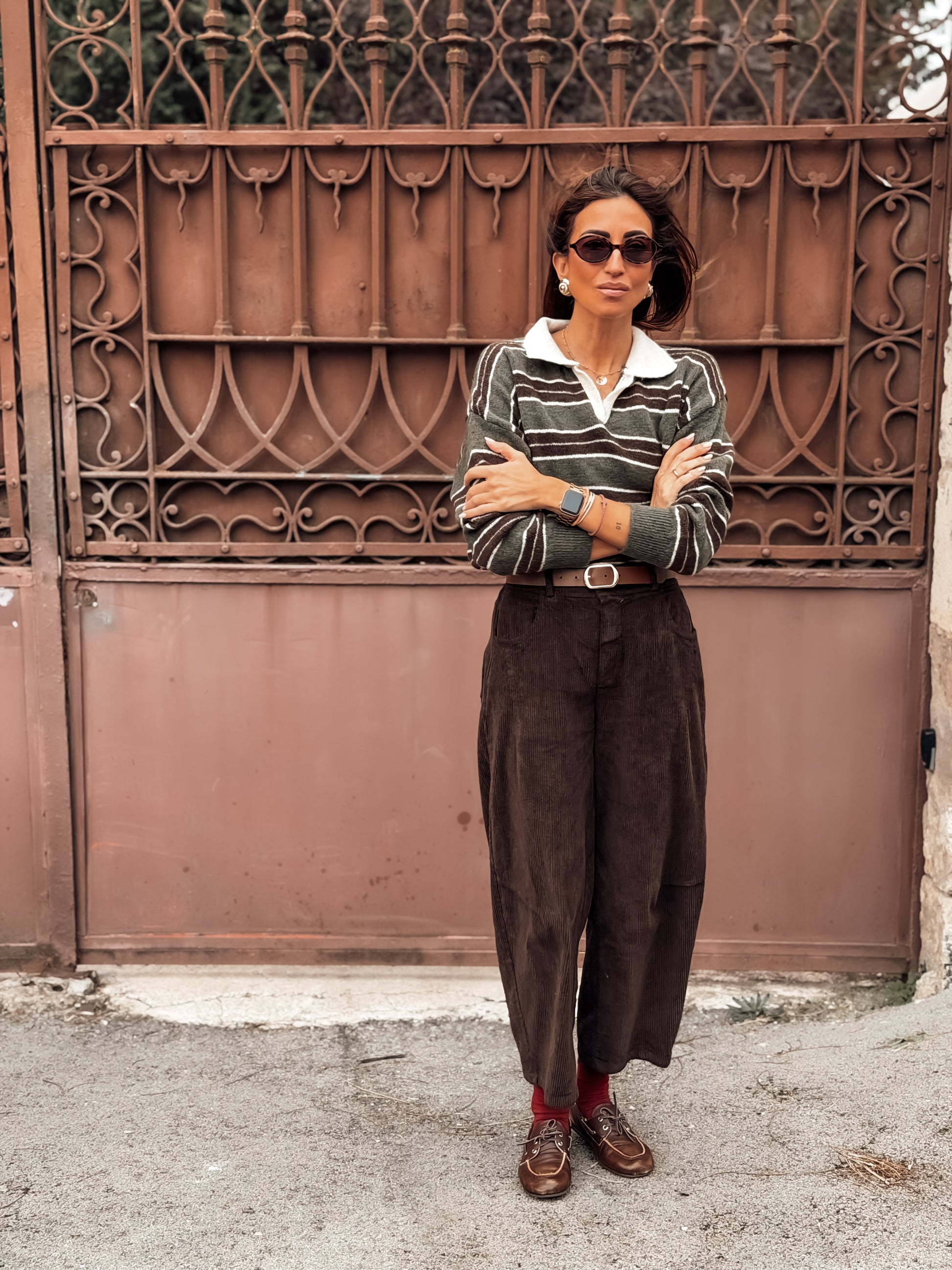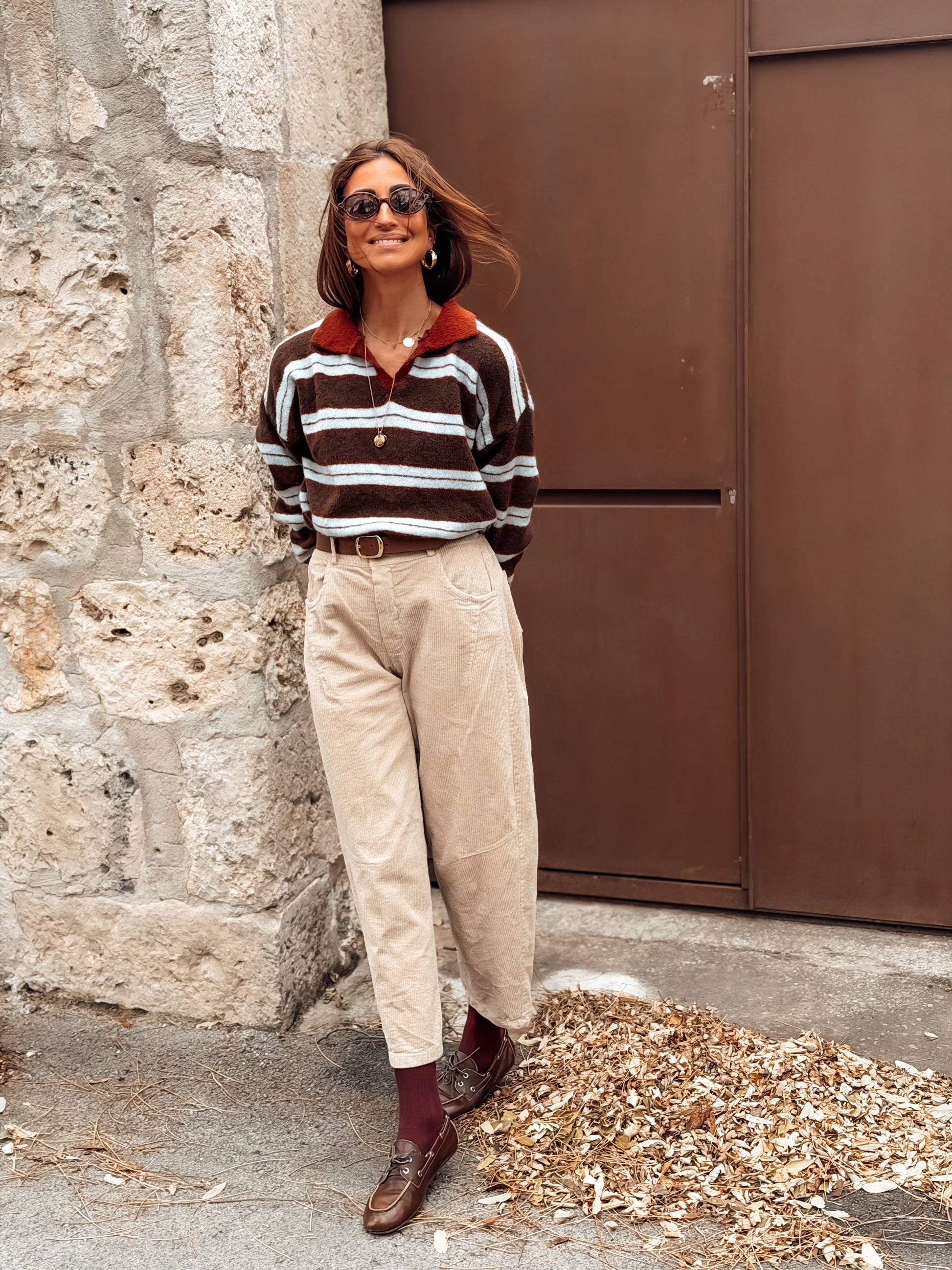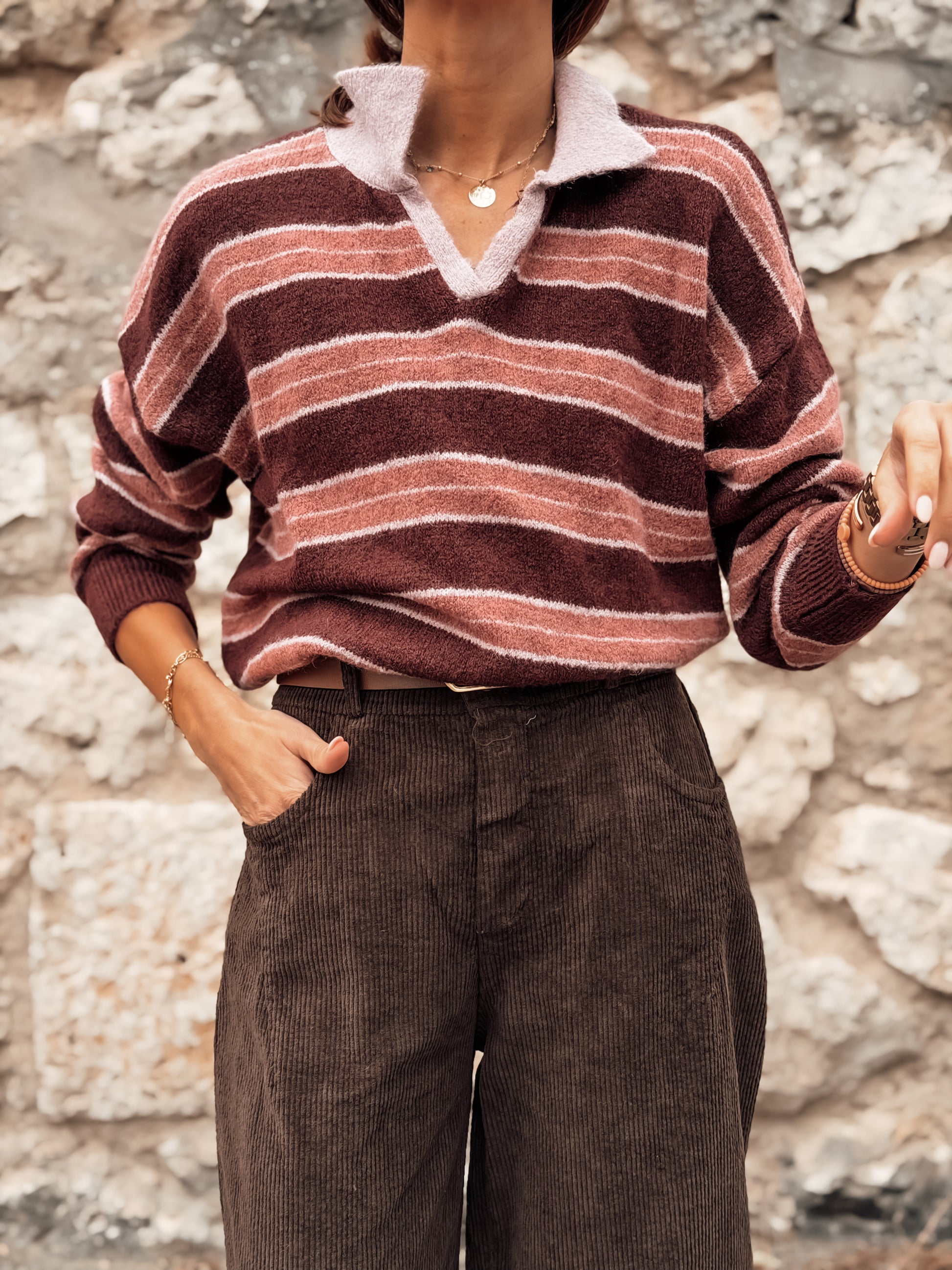 El polo tendencia con tejido premium en punto.Suave y en varios tonos para combinar con nuestros pantalones Pana Adriana .Tonos burgundy, marrón y verde