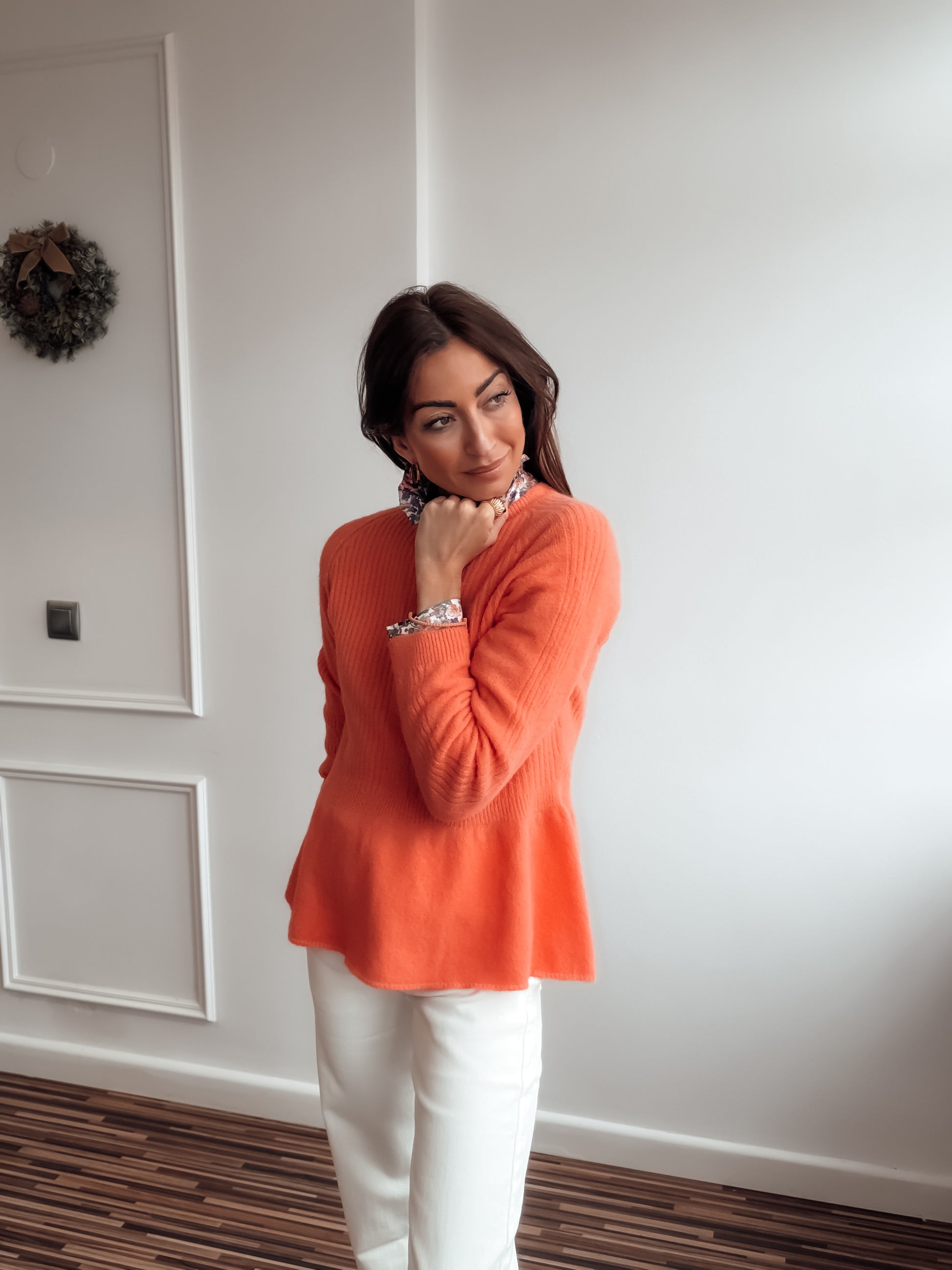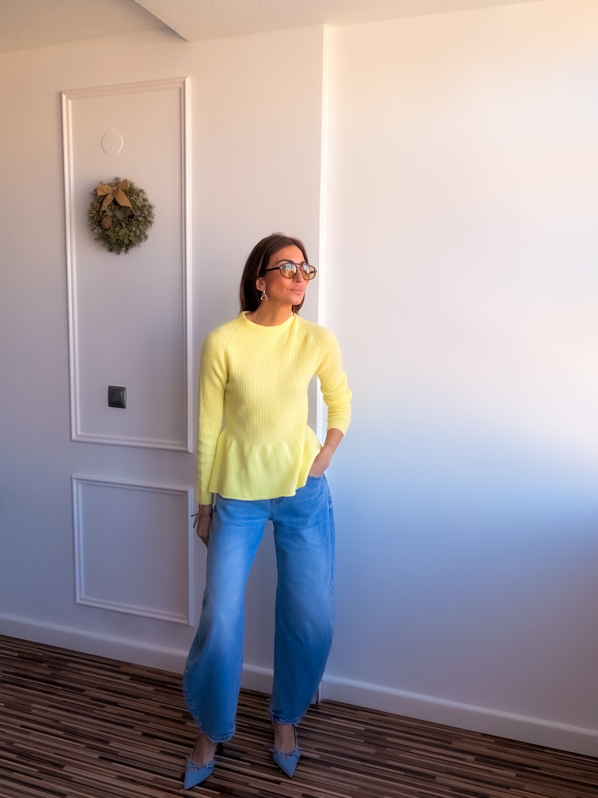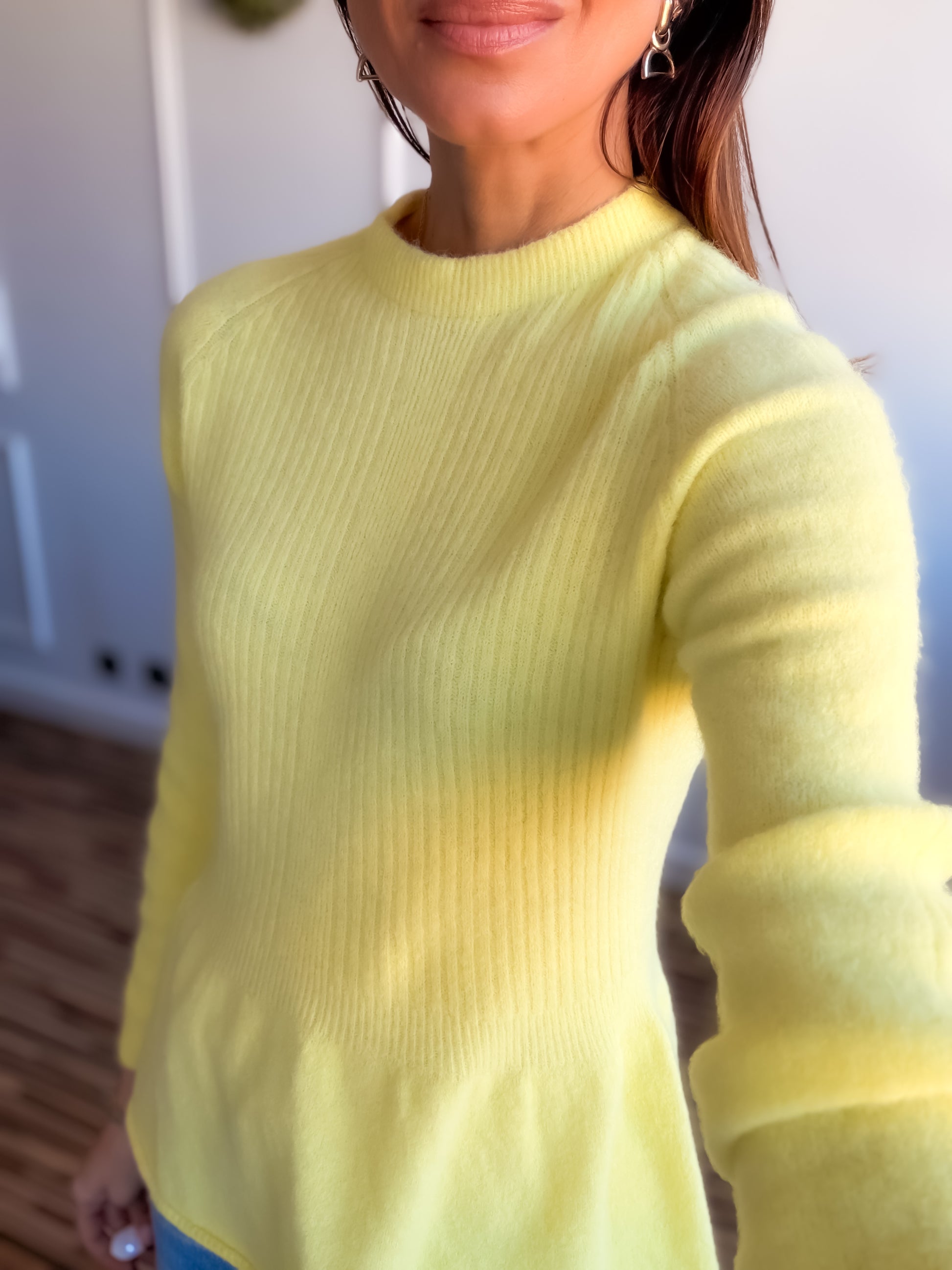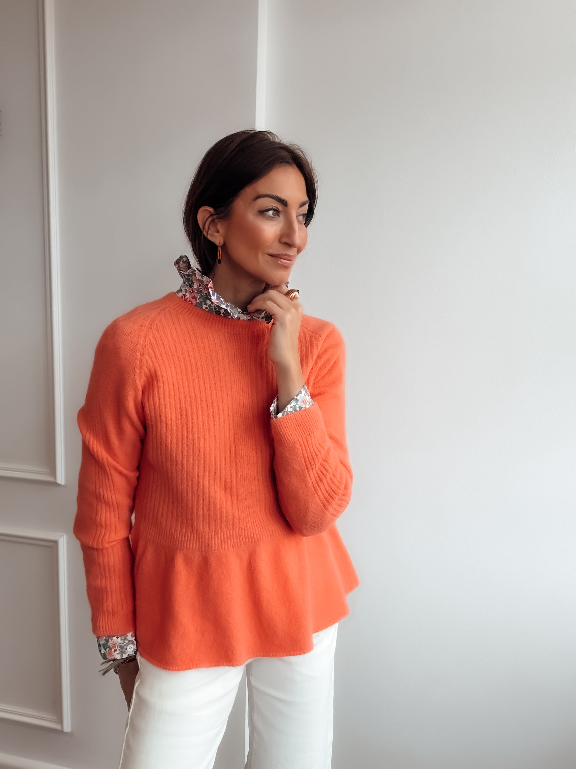 Jersey tacto cashmere con volante en parte inferior.