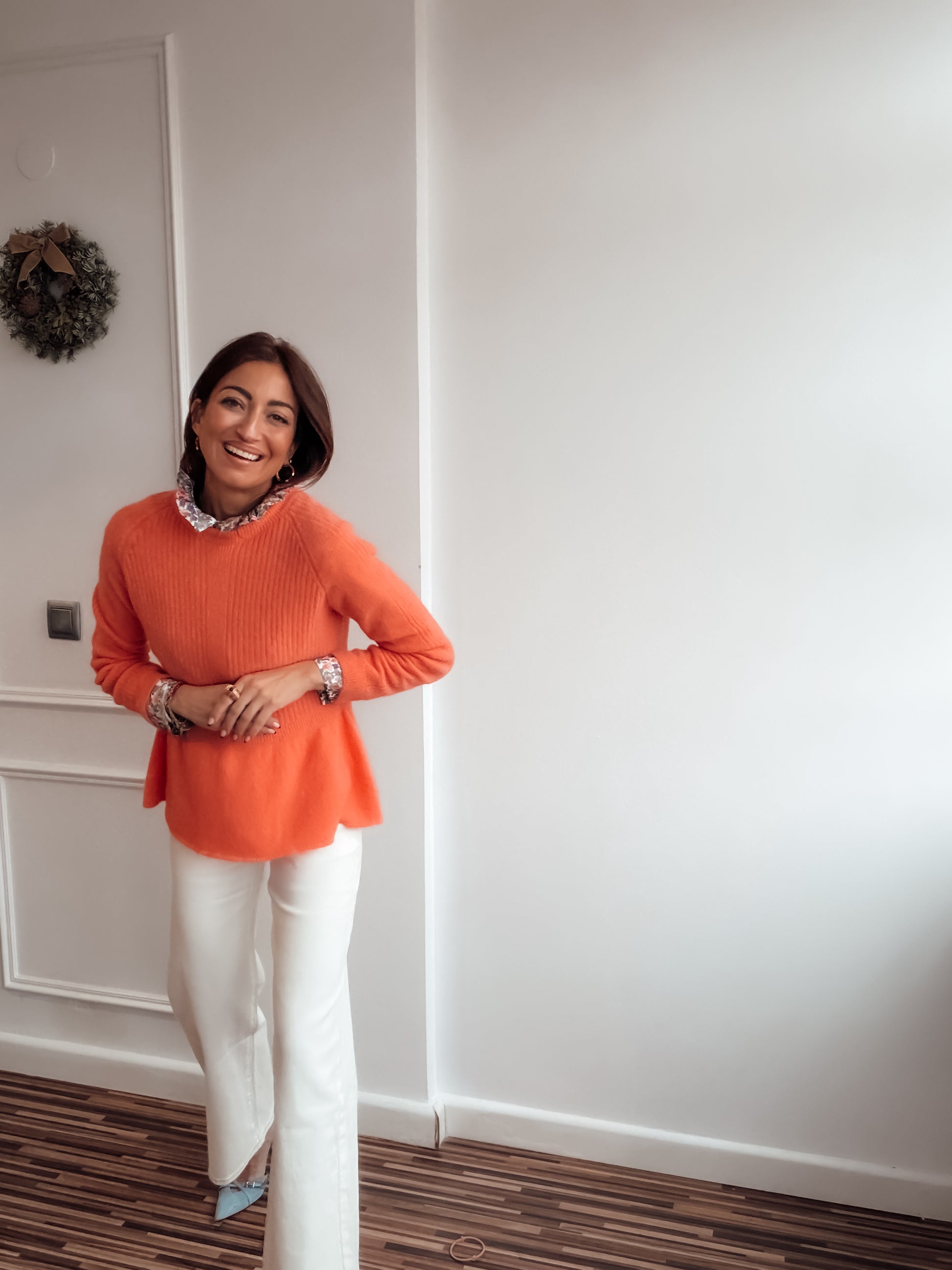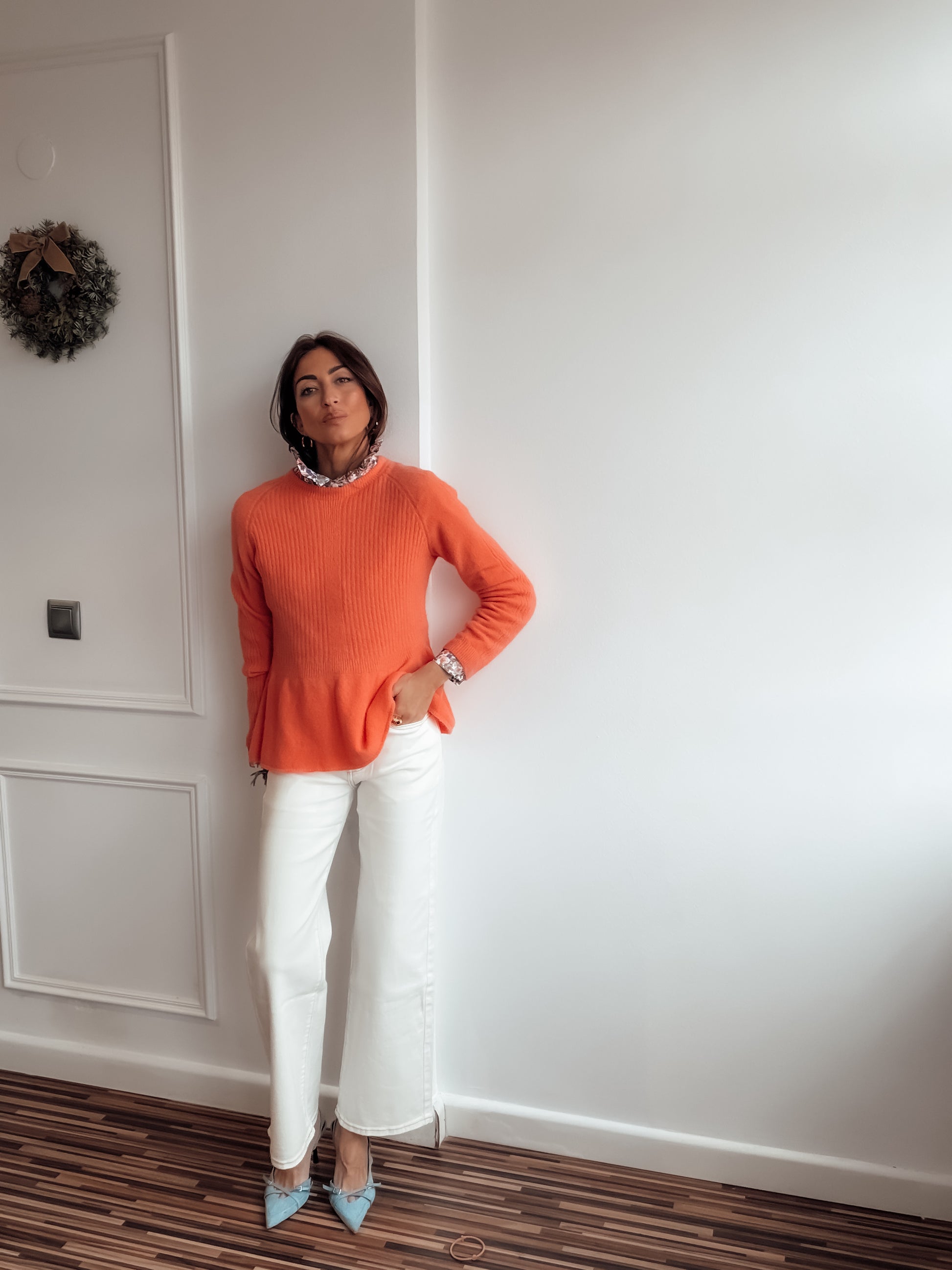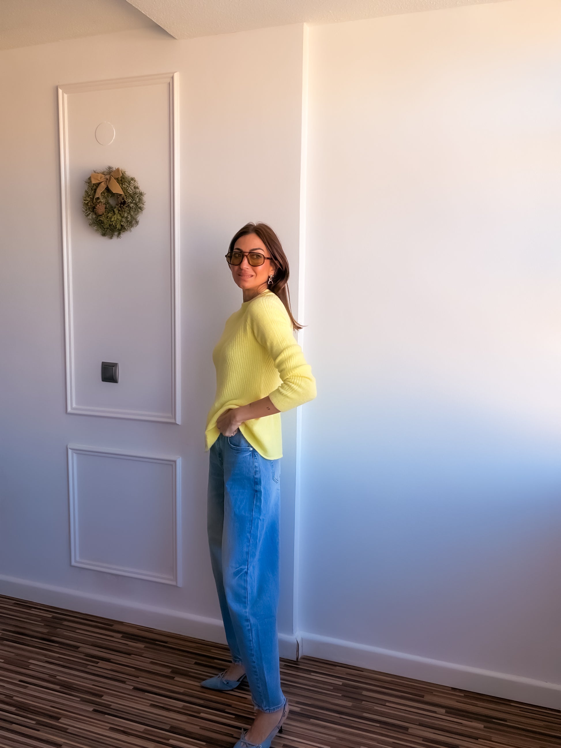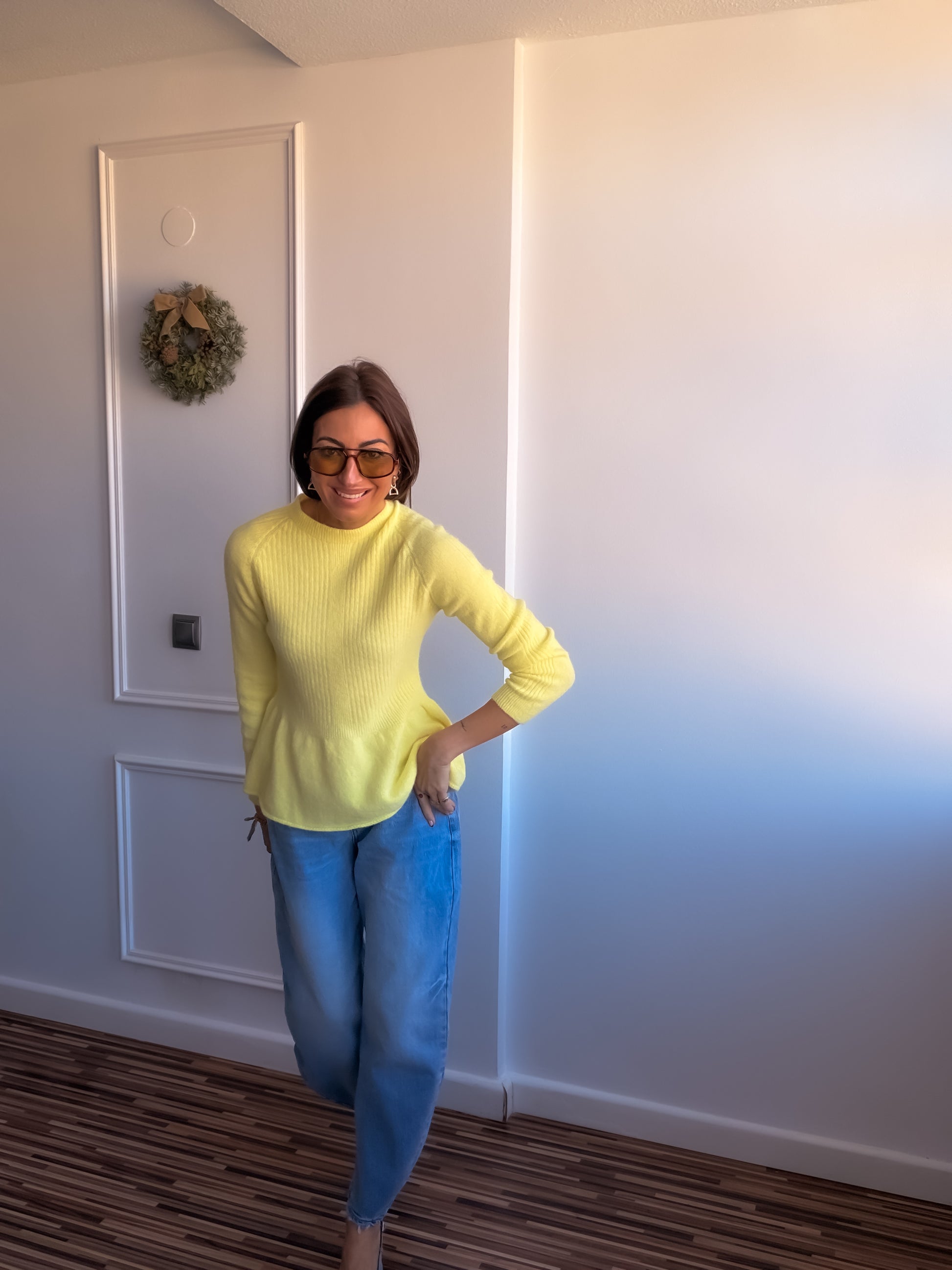 Jersey tacto cashmere con volante en parte inferior.