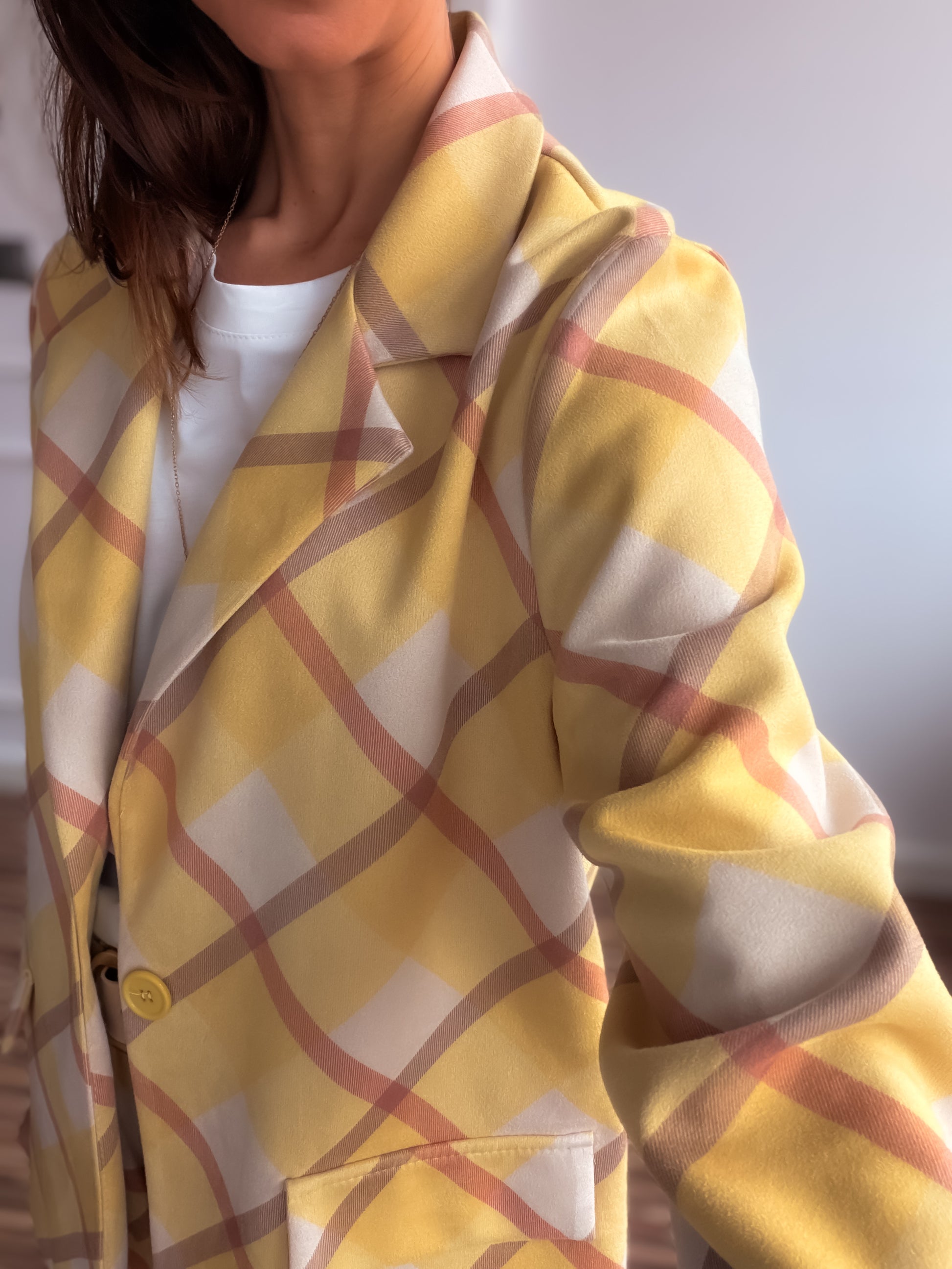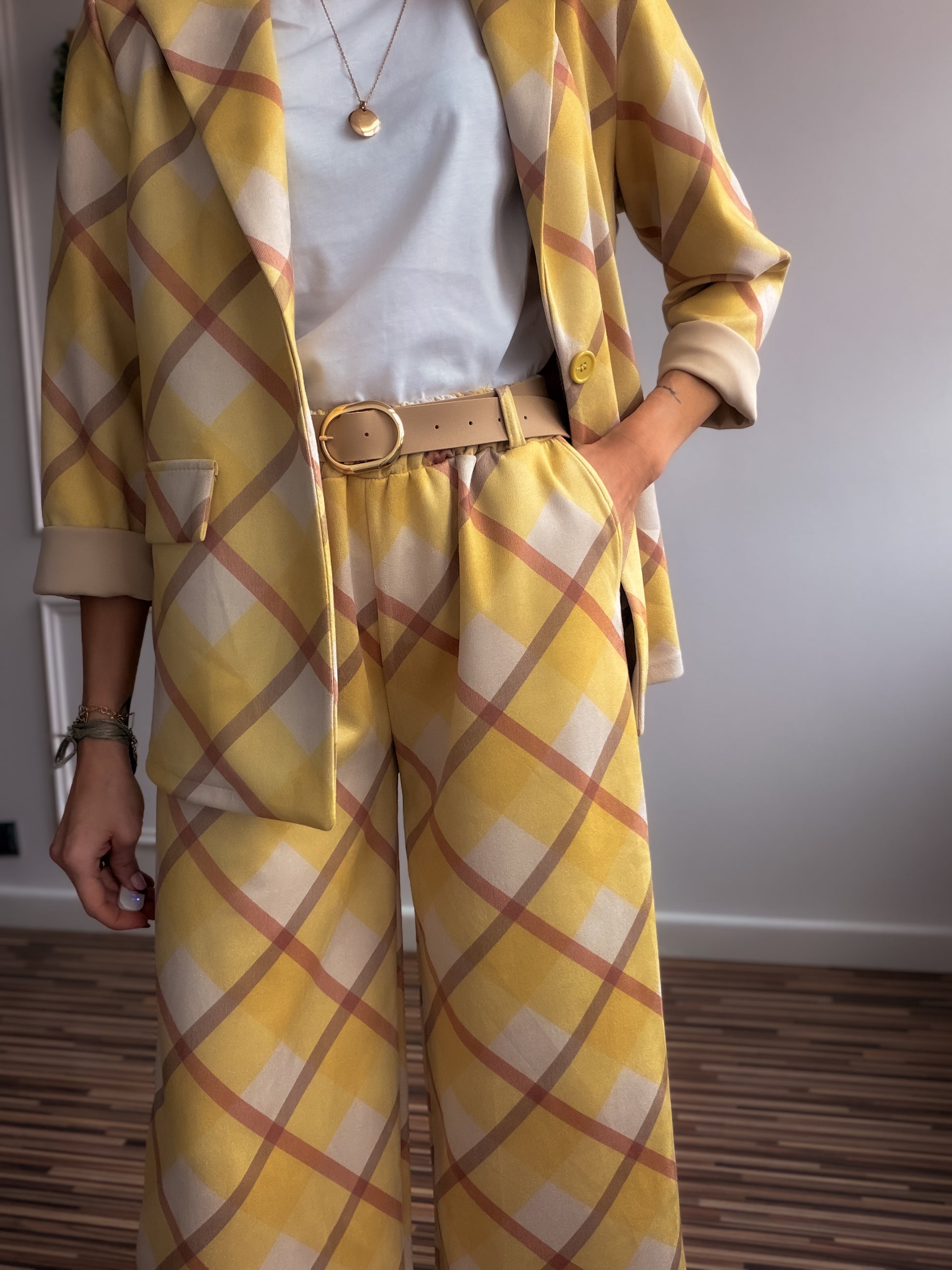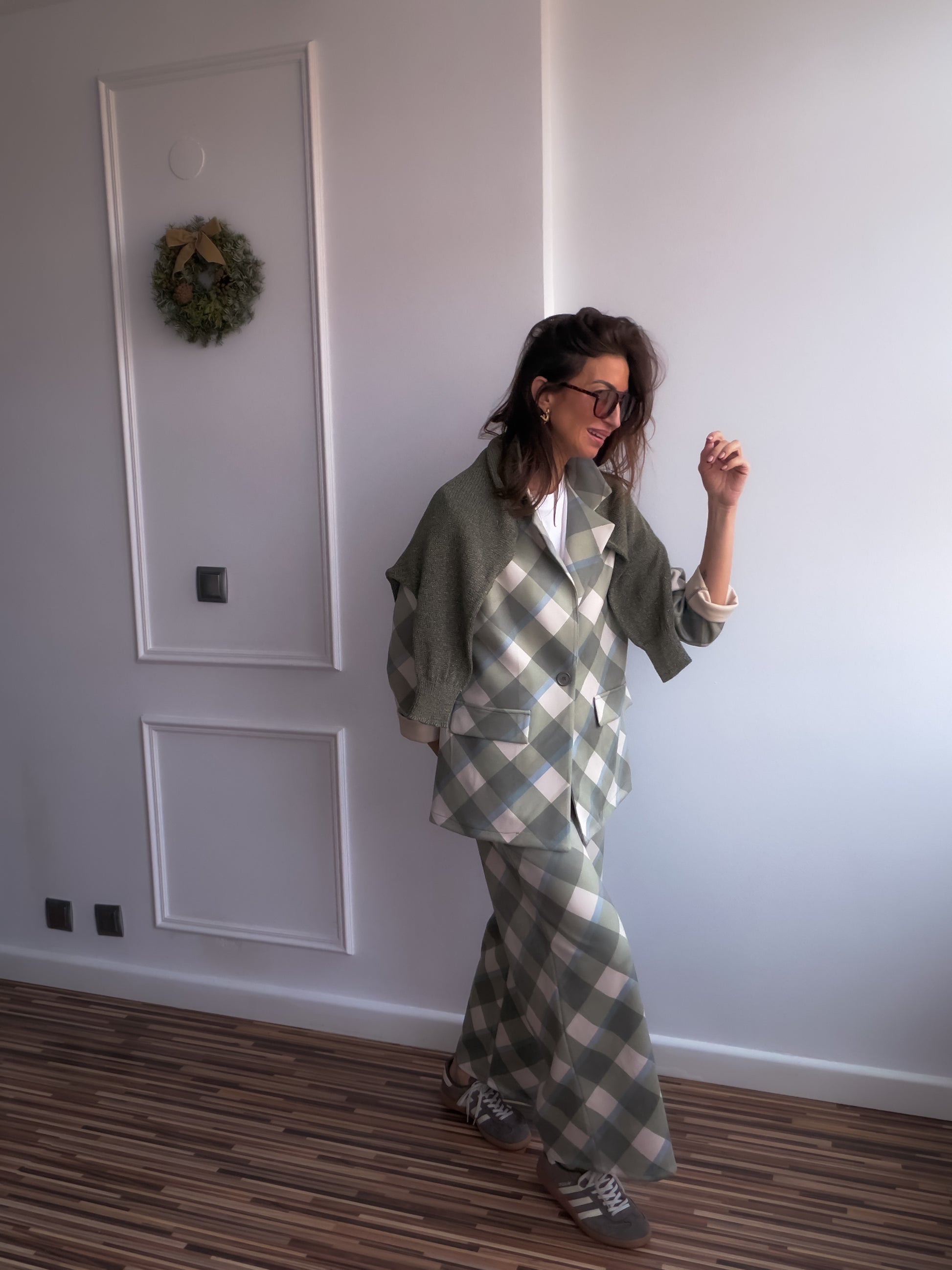 Conjunto de dos piezas : blazer y pantalón en tejido antelina de cuadros xl.